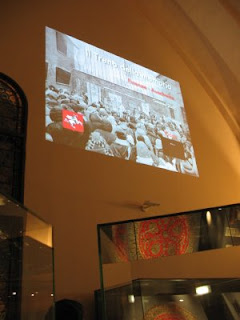 The Jewish museum is on two levels -- the lower level is mainly a display of Judaica. The upper level was revamped and reopened last year as a multi-media history exhibit using objects, panels, sound and projected images to tell the story of the Jewish community in Florence.