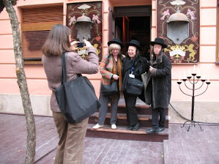 In the essay, I described how I own several miniature figurines of Jews -- two marzipan "Yeshiva bochers" that I bought at a kosher pastry shop in Budapest, and a tiny "Jew" clutching a coin that was given out as a sort of party favor to guests at the "Jewish style" Anatewka restaurant in Lodz, Poland. The figures all are caricaturish, but the bochers were destined for an internal (Jewish) market, and the little Jewish man was destined for mainly non-Jewish (Polish) consumers.
